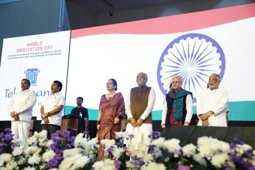 Governor Jishnu Dev Varma, Minister Jupally Krishna Rao and Ram Chandra Mission President Kamlesh D Patel (Daaji) led the proceedings. The event commenced with the traditional lighting of the lamp, followed by a guided meditation session conducted by Daaji.